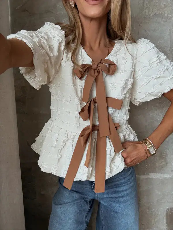 Ribbon Bow Tie Front Shirt