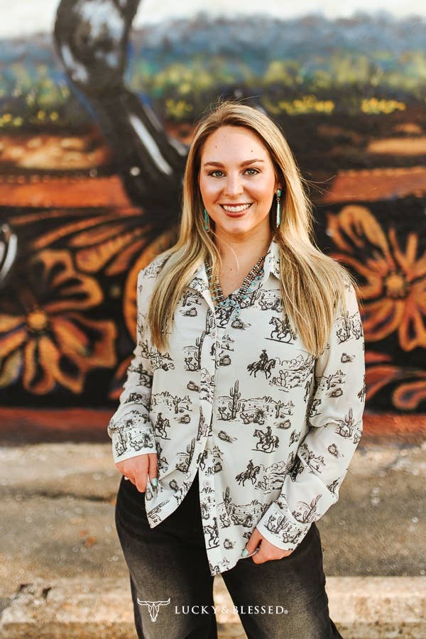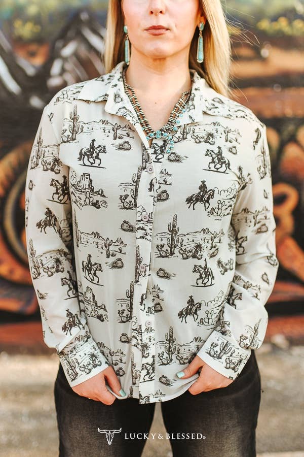 Western Desert Chiffon Collared Western Shirt