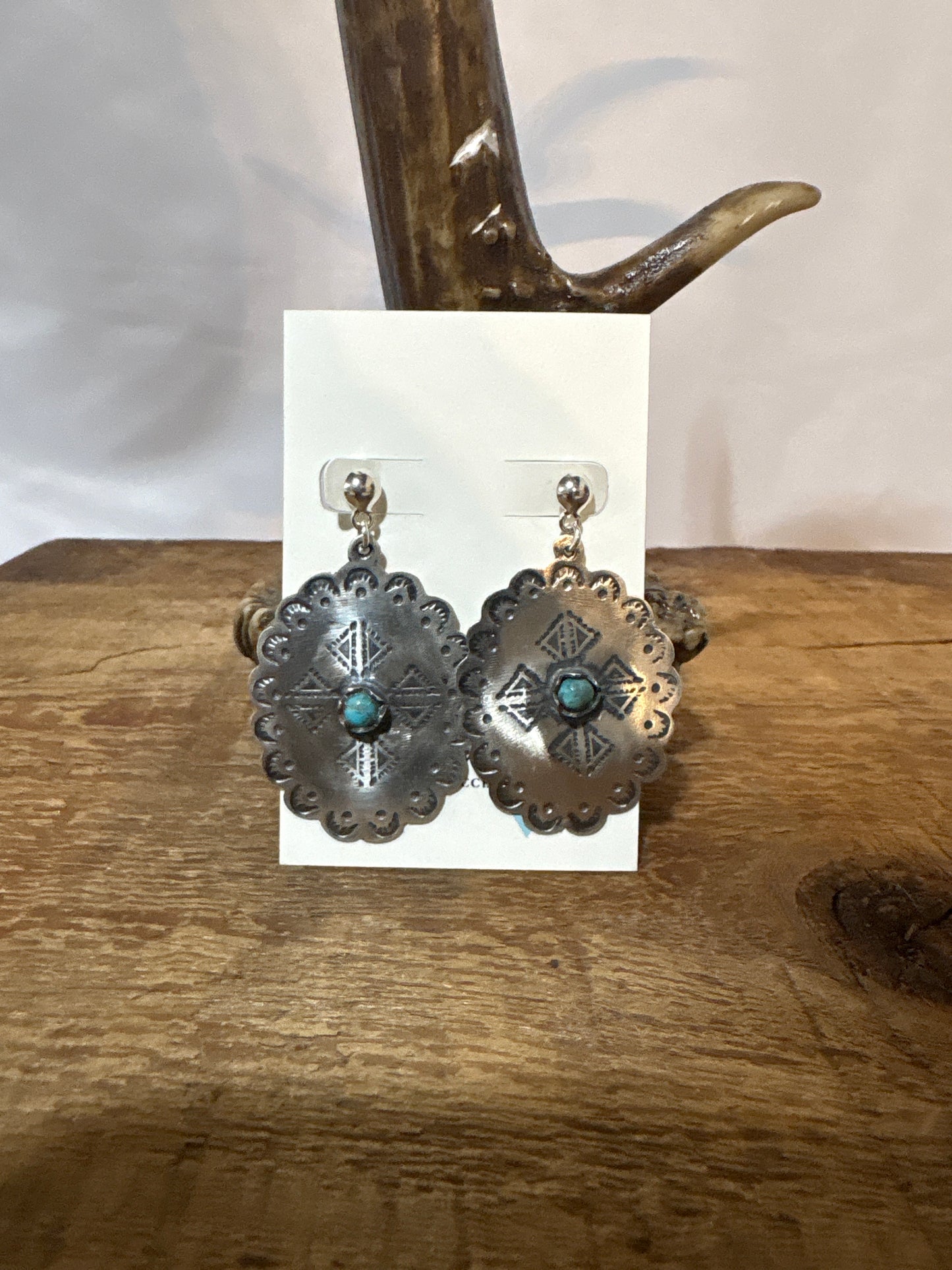P Diamond Matte Concho earring with turquoise center stone