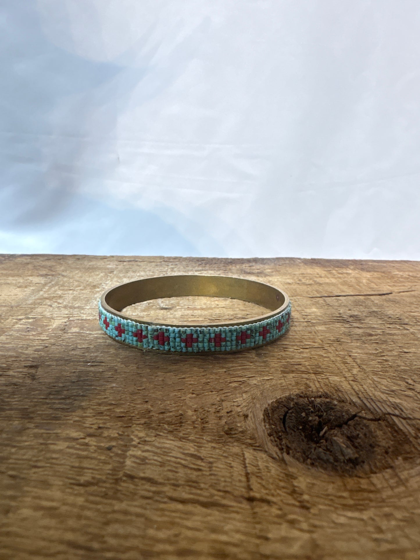 P Diamond Turquoise red bead bangle bracelet