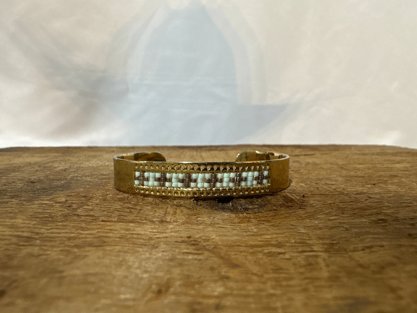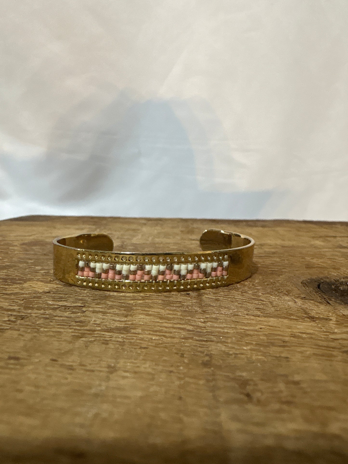P Diamond Channel Cuff with seed bead peach