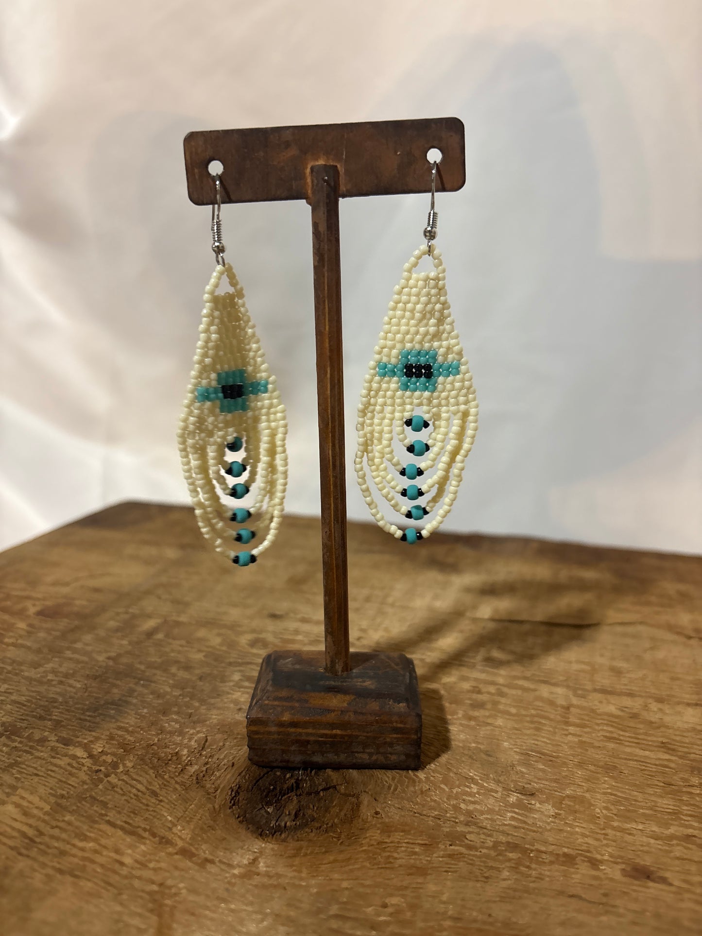 Add P Diamond Seed Bead drop earrings cream to the cart