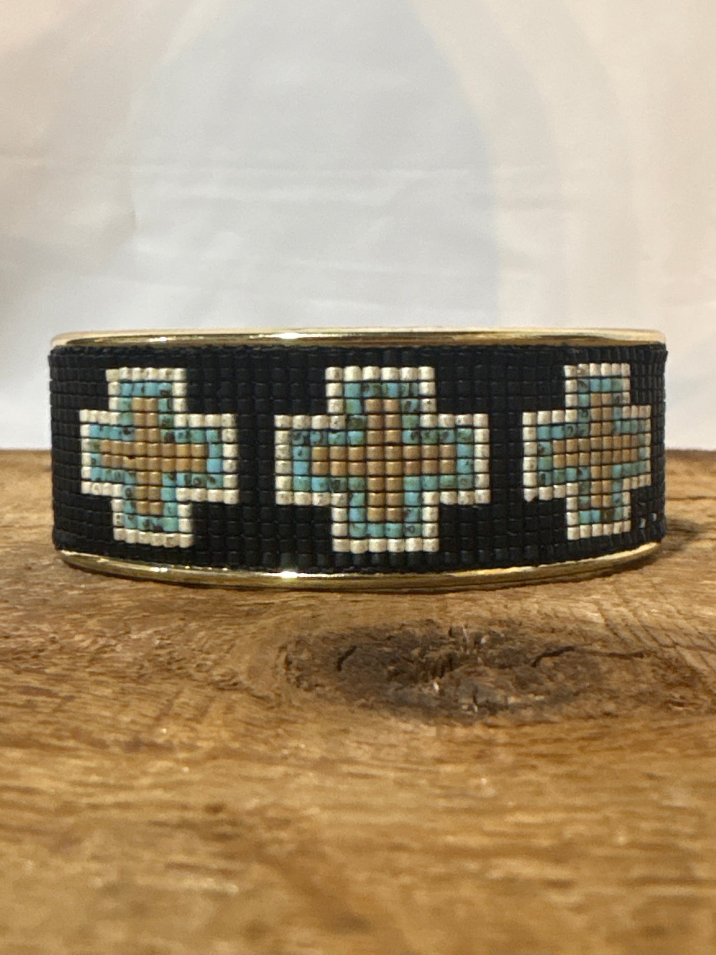 P Diamond Seed bead cross cuff