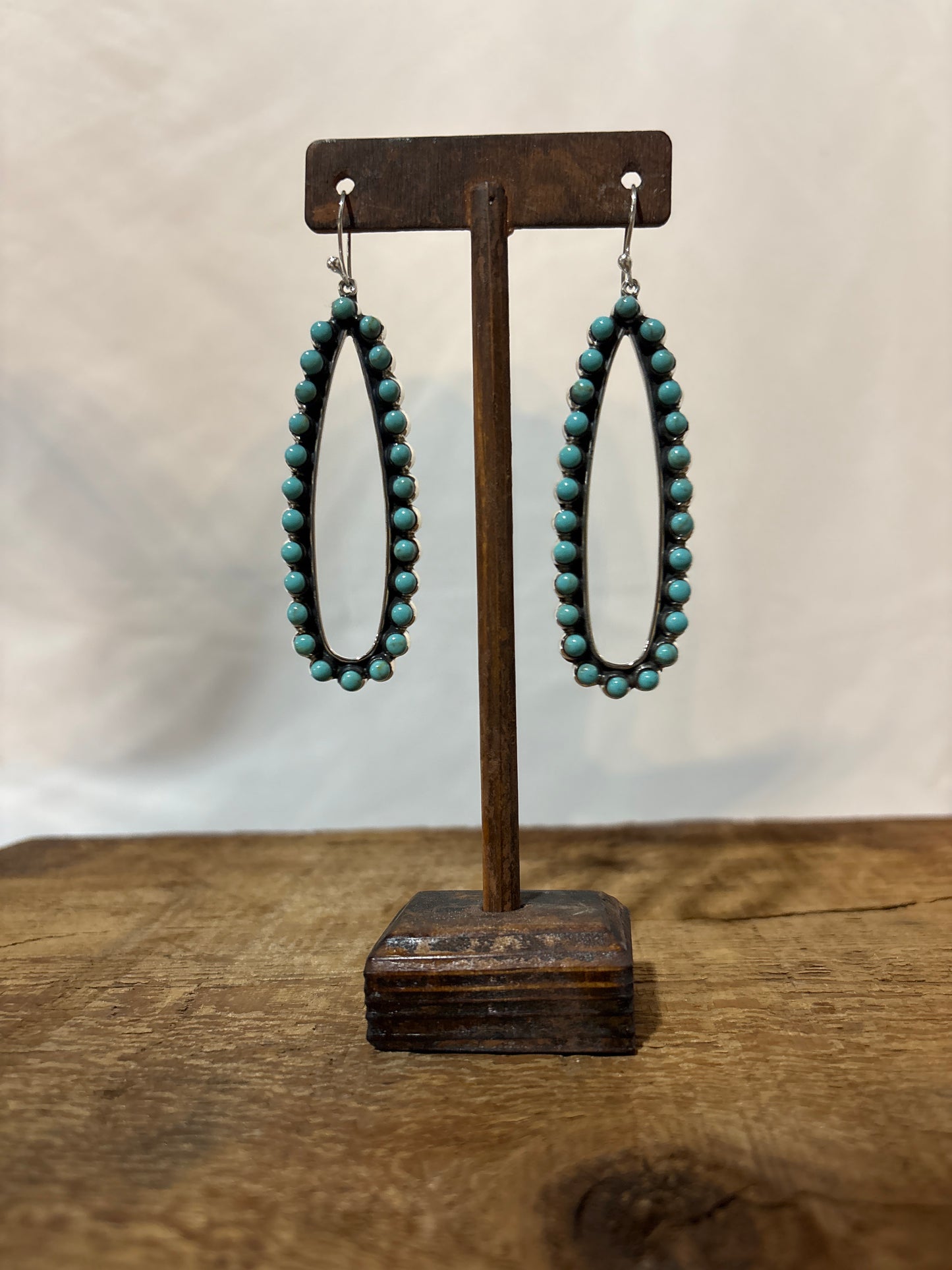 Add P Diamond Long open teardrop with turquiose dots earrings to the cart
